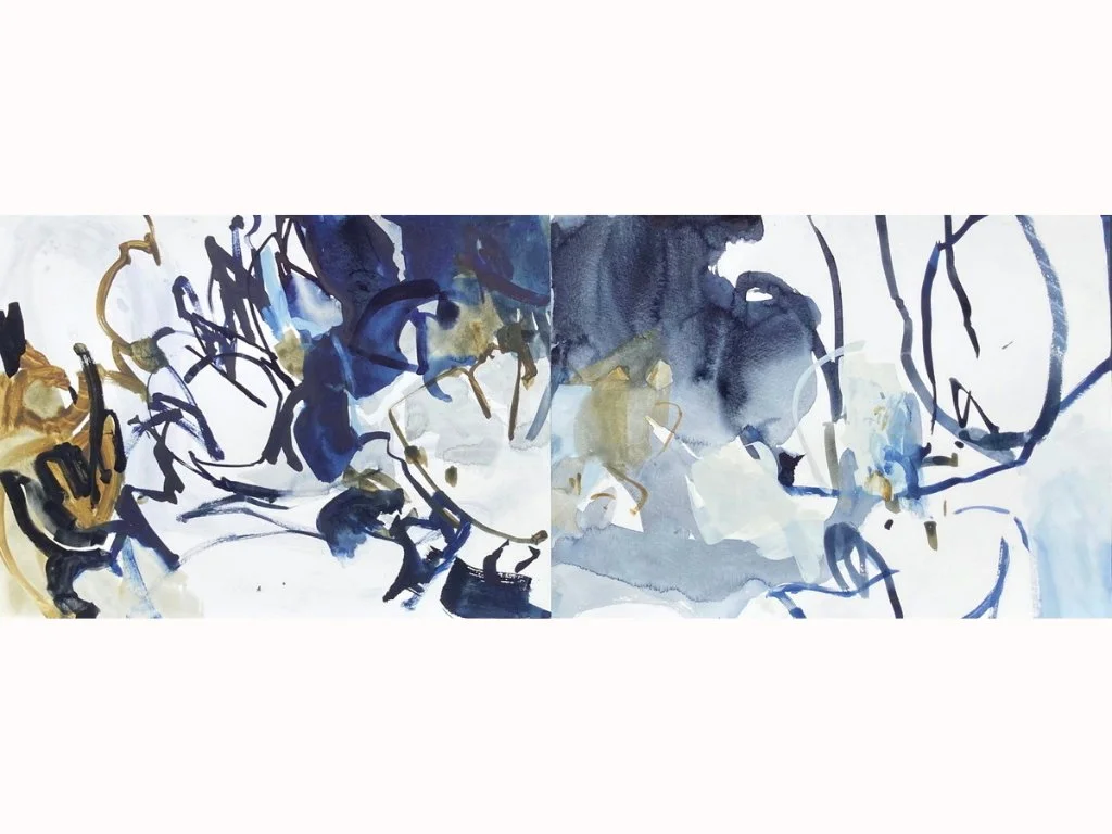 CLOUD OF UNKNOWING 1 & 2 (diptych) • watercolour & gouache • 28 x 76 cm • SOUNDINGS RESIDENCY at Jelly, Reading